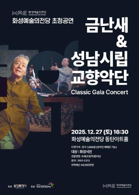 화성특례시는 오는 27일 오후 4시 30분 화성예술의전당 동탄아트홀에서 ‘금난새&성남시립교향악단’ 초청 공연을 개최한다고 5일 밝혔다.