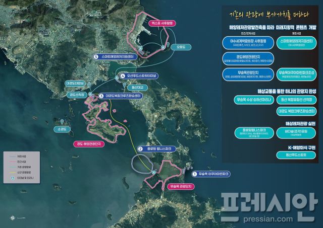 재정사업에는 △박람회장 사후활용과 연계한 스마트 해양레저지원센터 △돌산 우두리 오션푸드스트릿 터미널(회타운 부지) △경도 복합크루즈환승센터 △경도-무술목 해역 플로팅 웰니스파크 △무술목 해수욕장 아쿠아마린파크 등 5개 권역이 포함된다.