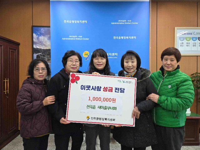 연천군 전곡읍 새마을부녀회는 지난 10일 어려운 이웃을 돕기 위한 성금 100만 원을 경기 사회복지공동모금회를 통해 전곡읍지역사회보장협의체에 기탁했다.