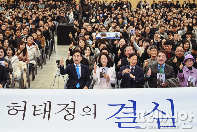 허태정 전 대전시장의 신간 '허태정의 결심' 출판기념회가 대전컨벤션센터에서 개최된 가운데 시민과 정치인 등 1만여 명이 참석해 성황을 이뤘다.