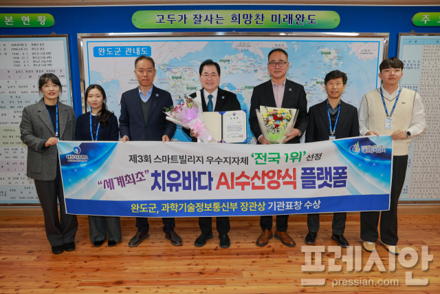 완도군은 '치유 바다 인공지능(AI) 수산양식 플랫폼'이 '제3회 스마트 빌리지 보급 및 확산 사업 우수 사례 발표 대회'에서 과학기술정보통신부 장관상을 수상했다고 16일 밝혔다.