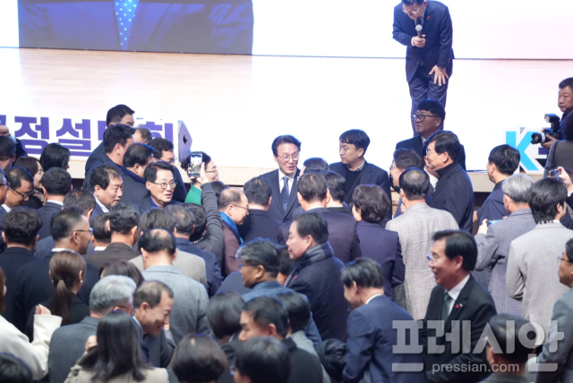 ▲20일 전남도청 김대중 강당에서 열린 'K-국정설명회'가 끝나고 김민석 국무총리와 기념사진을 찍으려는 인파가 몰리고 있다.2025.12.20ⓒ프레시안(김보현)