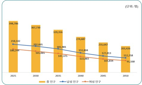 ▲전북 장래 청년인구 추계(2025~2050년). ⓒ 국가데이터처