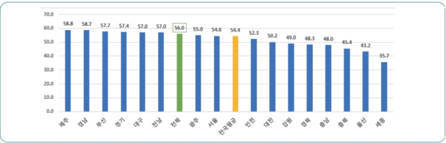 ▲전국 시도별 청년의 부모 동거 비율. ⓒ전북연구원