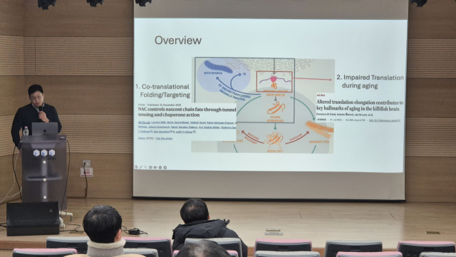 이날 행사에서 미국 스토니브룩 대학(Stony Brook University)의 Jae Ho Lee 교수는 ‘Ribo-seq (Ribosome profiling)을 활용해 단백질 생성의 원리 규명’을 주제로, 세포 내 단백질 생성 메커니즘과 노화와의 상관관계를 밝힌 최신 연구 사례를 소개했다.