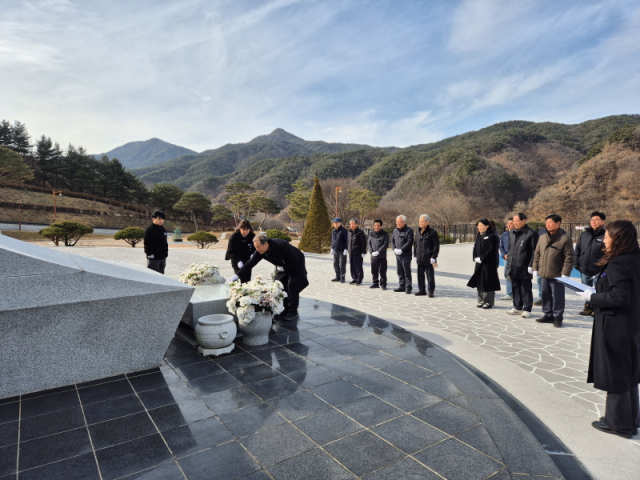 (사)거창사건희생자유족회는 병오년 새해를 맞아 지난 5일 거창사건추모공원 위령탑에서 이성열 유족회장과 임원들·사업소 직원 등 20여 명이 참석해 새해맞이 위령탑 참배를 진행했다.