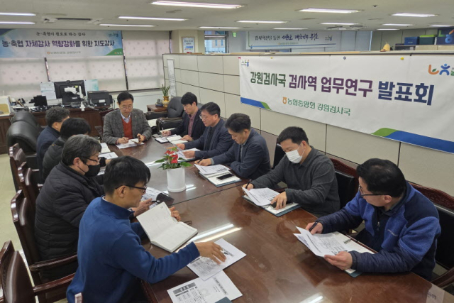 농협중앙회 강원검사국(국장 최상률)은 13일 검사역의 전문성 제고와 역량 강화를 위해 ‘검사역 업무연구 발표회’를 개최했다.