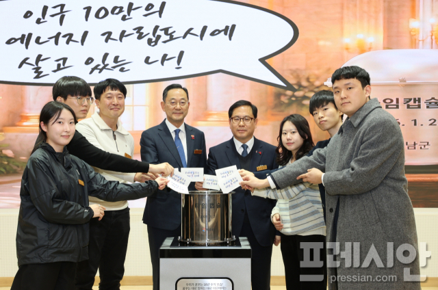 ▲해남군이 2026년 시무식때 인구10만 에너지자립도시 비전을 담은 타임캡술 봉인식을 가졌다.2026.1.2ⓒ해남군