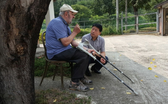 ▲지정환신부 생전에 인터뷰를 진행하고 있는 황태규 교수.ⓒ