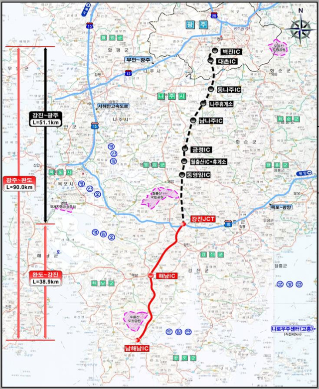 20일 해남군에 따르면 올해 완공되는 노선은 광주광역시 서구 벽진동에서 출발해 강진군 성전면에서 남해고속도로와 분기점(JCT)으로 연결될 예정이다.