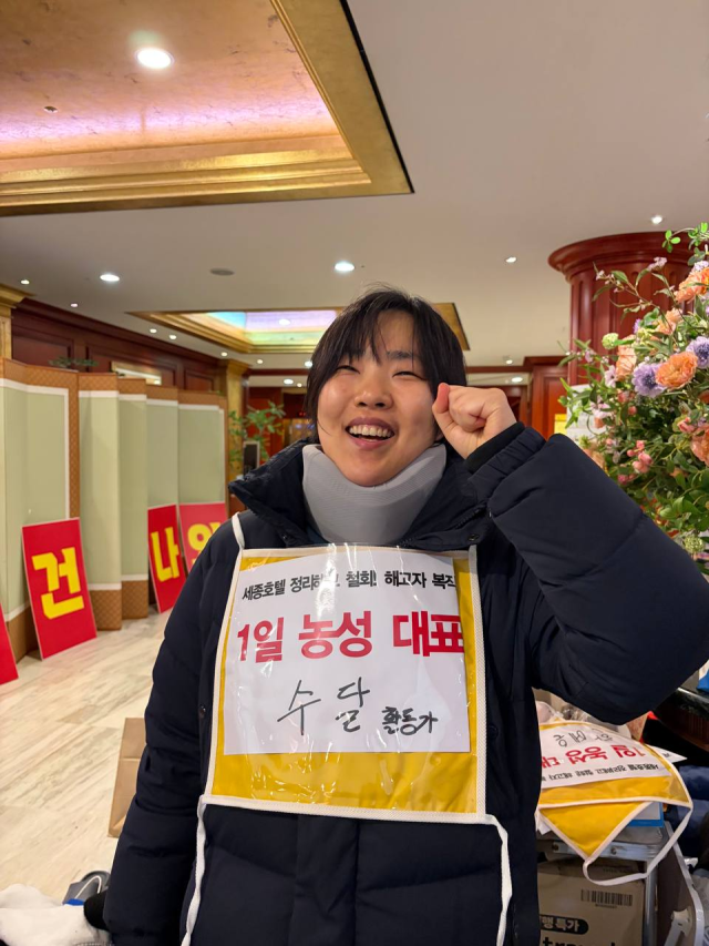 저는 이 상황에서 숙련된 노동자를 복직시키지 않는 걸 이해할 수 없어요. 오히려 로비 농성에 돌입한 해고자에게 법적인 압박이 올 거라고 예상되는 상황도 이해할 수 없습니다. 그래서 농성대표단에 자원했습니다. 시민사회가 세종호텔지부의 투쟁을 끝까지 지지하겠습니다.