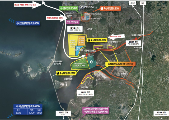전북은 2030년까지 새만금과 고창·부안 해상에 총 31조 원을 투자해 해상풍력 4GW, 육상·수상 태양광 3GW 등 총 7GW 규모의 재생에너지 발전단지 조성 계획을 정부에 제시했다.