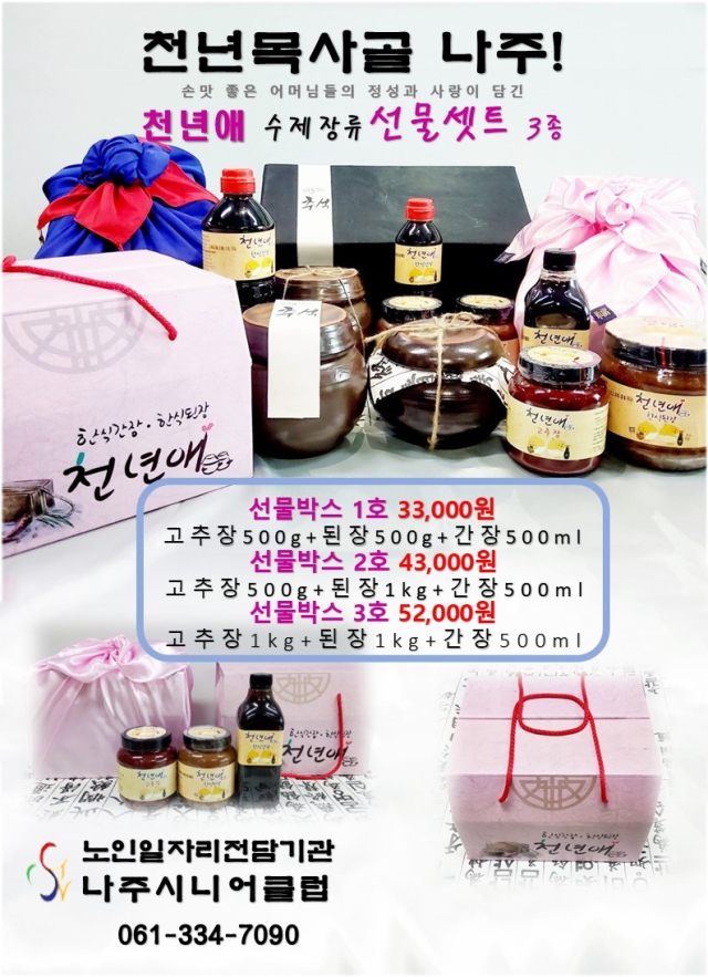 기획전 판매 상품은 ▲여수시니어클럽 김치류 ▲순천시니어클럽 손질 멸치·누룽지세트 ▲곡성시니어클럽 참기름 세트 ▲고흥시니어클럽 참깨 누룽지 ▲보성시니어클럽 녹차 기름 세트 ▲완도시니어클럽 김·유자사과 주스 세트 등이다.