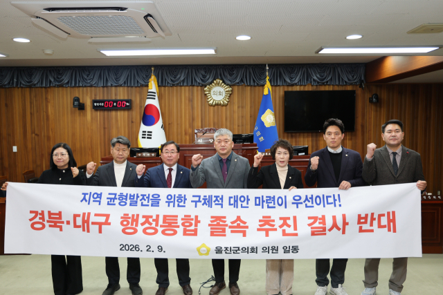 울진군의회는 지난 9일 본회의장에서 의원 전원 동의로 ‘경북·대구 행정통합 졸속추진 반대 성명서’를 임동인 부의장이 대표로 발표했다.