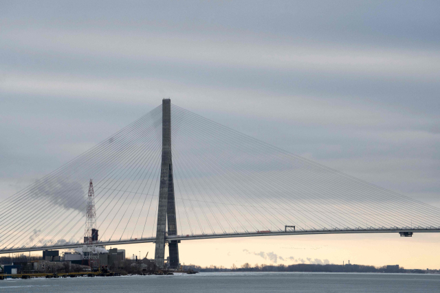 ▲11일(현지시간) 캐나다 온타리오주 윈저와 미국 미시간주 디트로이트를 잇는 고디 하우 국제대교의 모습. ⓒAFP=연합뉴스