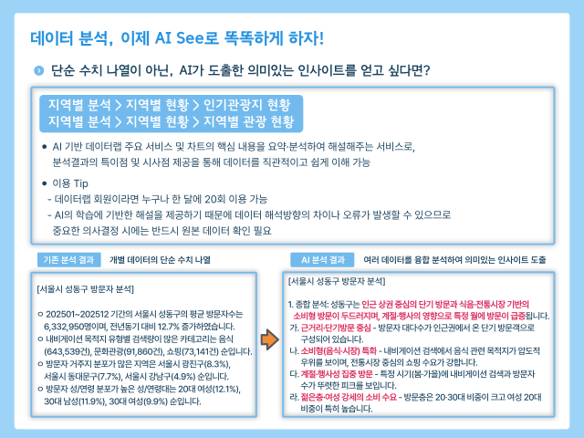 이번 개편은 인공지능(이하 ‘AI’) 기술과 신규 데이터를 융합해 분석 범위를 확대하고, 지자체와 업계의 실무 활용도를 높이는 데 중점을 두었다.