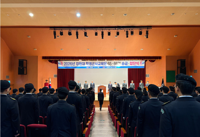 강원대학교(총장 정재연) 춘천캠퍼스(캠퍼스총장 임의영) 제127학생군사교육단(단장 조영전)은 5일 춘천캠퍼스 실사구시관에서 ‘제65기 승급 및 제66기 입단식’을 개최했다.
