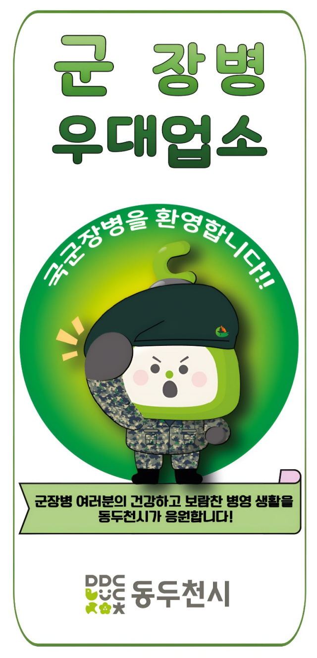 동두천시가 군 장병의 경제적 부담을 줄이고 군 친화적인 지역 환경을 조성하기 위해 ‘군 장병 할인업소’ 신규 모집에 나섰다.