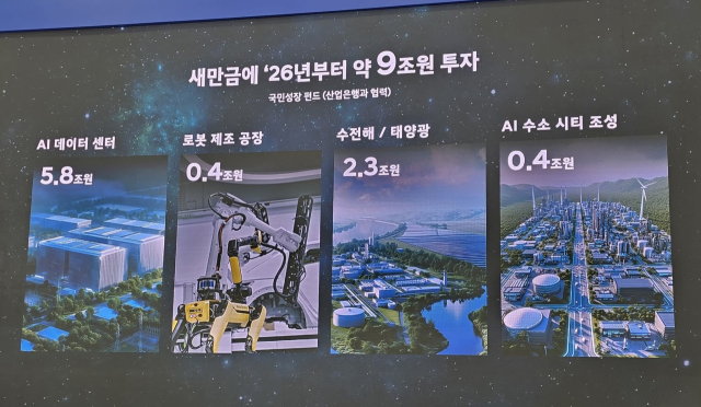 ▲ 지난 2월 27일 열린 현대자동차그룹 새만금 투자협약식에서 공개된 투자 계획 자료 화면. ⓒ프레시안