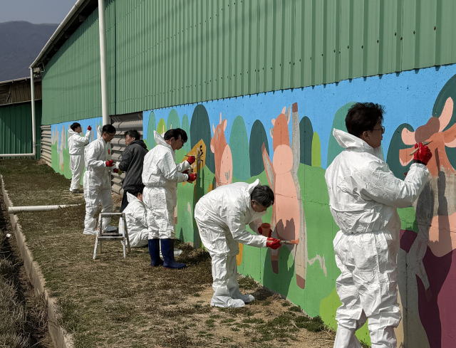 농협 강원본부(본부장 김병용)와 춘천철원화천양구축산농협(조합장 이중호)은 20일 철원군 동송읍에 위치한 축산농장에서 ‘축산환경 소독의 날’ 행사의 일환으로 ‘예쁜농장, 벽화그리기’를 실시했다.