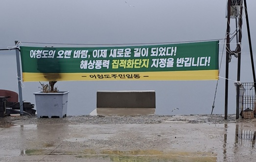 어청도 마을 곳곳에는 ▲오래 기다린 어청도의 결실, 해상풍력 집적화단지 지정 진심으로 환영합니다 ▲미래를 향한 어청도의 돛이 올랐다. 해상풍력 집적화단지 지정 힘차게 환영합니다 ▲어청도의 오랜 바람 이제 새로운 길이 되었다. 해상풍력 집적화단지 지정을 반깁니다 등의 문구가 담긴 현수막이 게시됐다.