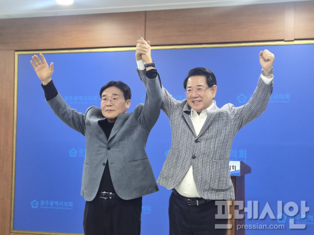 앞서 지난 30일 신정훈 후보와 강기정 후보는 광주시의회 브리핑룸에서 기자회견을 열고, 여론조사 결과 신 의원을 단일 후보로 확정했다.