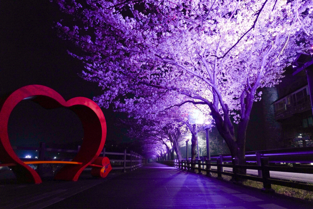 특히 야간에는 형형색색의 조명이 벚꽃을 은은하게 비추며 낮과는 또 다른 낭만적인 분위기를 연출한다.