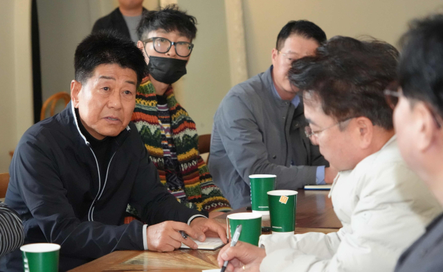 육동한 춘천시장은 1일 남산면 광판리의 한 카페에서 사업시행자 측 바이오테크이노밸리자산관리㈜ 김용찬 대표, 광판리 주민대책위원회 관계자가 참석한 가운데 기업혁신파크 사업 추진 경과를 공유하고 지역주민들의 의견을 수렴하는 시간을 가졌다.