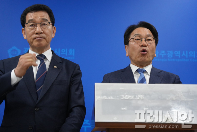 더불어민주당 전남·광주 통합특별시장 경선에서 단일화를 이뤄낸 신정훈·강기정 후보가 '원팀'으로서의 공식 행보에 나섰다. 이들은 18년 숙원인 광주 군 공항 이전 문제에 대한 청사진을 공동으로 제시하는 한편, 경쟁자인 김영록 후보를 향해서는 "3선은 욕심"이라며 '용퇴론'을 제기하는 등 전방위적인 공세를 펼쳤다.