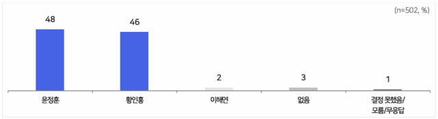 두 후보 간 격차는 2%포인트로 오차범위 내에 위치해 사실상 우열을 가리기 어려운 상황이다. 다자 경쟁보다는 두 후보가 맞붙는 양강 구도가 형성되며, 판세는 팽팽한 균형 상태를 보이고 있다.