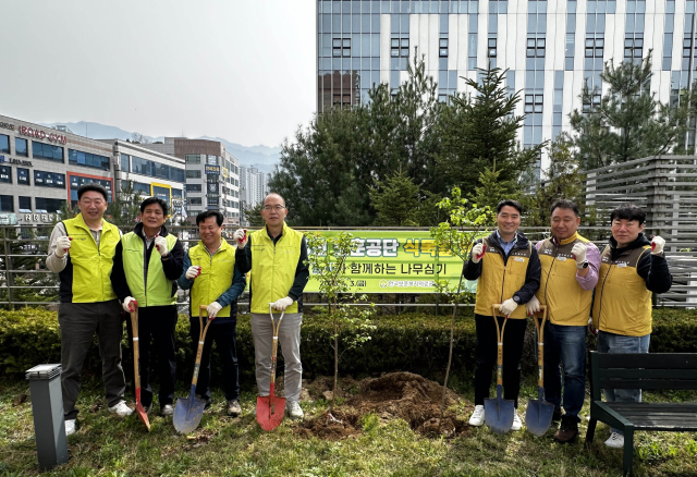 이날 공단 임직원들은 산림청으로부터 지원받은 산사나무와 낙엽송 80여 그루를 비롯해 영산홍, 라일락 등 다채로운 수목을 사옥 내 녹지공간에 식재했다.