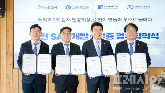 6일 순천시에 따르면 최근 정원워케이션센터에서 순천시·국립순천대·조선대·전남테크노파크가 '순천 SAT 개발·실증 협약'을 체결했다.