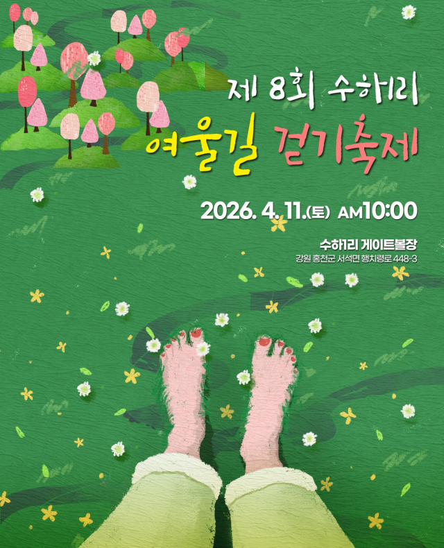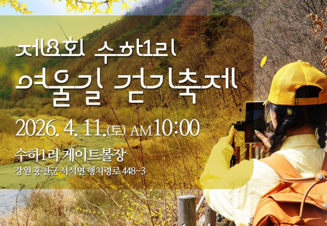 홍천군 서석면 수하1리의 맑은 물소리와 정겨운 마을 풍경을 벗 삼아 걷는 ‘제8회 수하1리 여울길 걷기 축제’가 오는 11일 오전 10시 수하리 게이트볼장에서 막을 올린다.