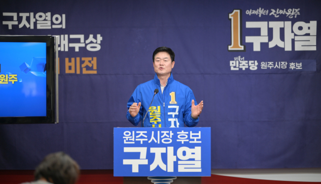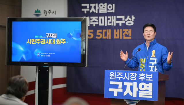 구자열 더불어민주당 원주시장 예비후보가 14일 오전 기자회견을 열고 '시민주권시대 원주'를 슬로건으로 한 핵심 공약을 발표했다.