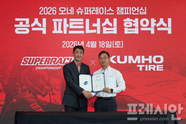 금호타이어가 국내 최고 권위의 모터스포츠 대회인 '2026 오네(O-NE) 슈퍼레이스 챔피언십' 토요타 가주레이싱 6000클래스 참가팀 후원을 위해 슈퍼레이스와 후원 조인식을 체결했다.