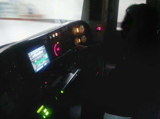 | ▲ 지하철 기관사가 어둠 속에서 운전을 하고 있다. ⓒ프레시안(박세열) |