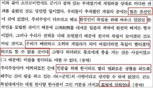 | ▲민족문제연구소가 발췌한 백선엽 회고록 <대게릴라전>의 일부. ⓒ민족문제연구소 |