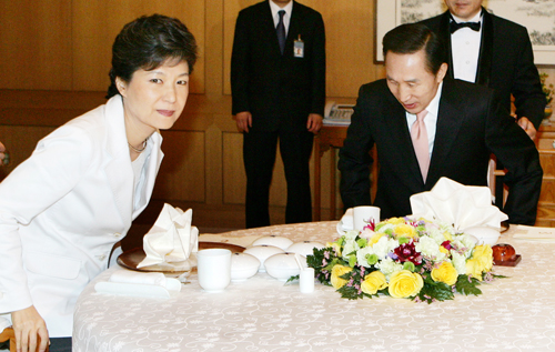 | ▲ 박근혜 전 대표와 이명박 대통령 ⓒ뉴시스 |