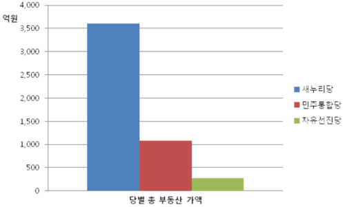 위의 표를 그래프화한 것이 〈그림2〉인데, 의석수에서 압도적인 원내 1당인 새누리당이 부동산부자들도 가장 많이 포진한 것으로 드러난다.
