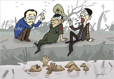 | ▲ 반기문 총장의 버마 방문에 관한 만평 ⓒ인터넷 <이라와디> 신문 |