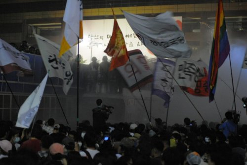 한 시인은 함민복 시인인데 촛불집회에 참석, 6월 29일이던가 폭력이 절정에 달했을 무렵에 시위대에 포위된 전경 한 사람을 시위대를 설득하고 설득해서 풀어준 뒤 몇 걸음 못 가서 이번엔 전경들에게 포위된 채 몽둥이, 방패, 쇠파이프로 깨지고 찍히고 얻어맞아서 머리, 어깨와 온 몸에 상처를 입고 입원 중이라 한다. 함 시인은 강화의 시골에서 가난한 흙집에 사는데 투명하고 아름다우며 따뜻한 사람의 시를 내내 써온 아름다운 시인이다. 주변의 젊은 문인들은 분노보다도 깊은 슬픔을 느끼고 있다고 한다. 이것은 우리에게 과연 무엇을 뜻하는가?