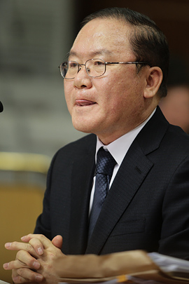 | ▲ 민주당 박용진 대변인은 <이철희의 이쑤시개> 녹음 중이던 지난 23일 밤 11시, 일선에서 이동흡 헌법재판소장 후보자와 "연락이 두절됐다고 한다"며 "(임명이) 어려울 것"이라고 말했다. ⓒ프레시안(최형락) |