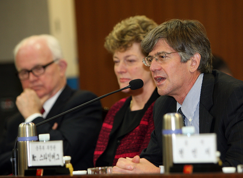 | ▲ 제임스 스타인버그 미 국무부 부장관(오른쪽)이 스티븐 보즈워스 대북정책 특별대표(왼쪽) 등 한반도 관련 주요 정책 담당자들과 함께 서울을 방문했던 때의 모습. 일부 언론들은 이들에 대해서도 '대북 제재 사절단'인양 묘사했었다. ⓒ연합뉴스 |