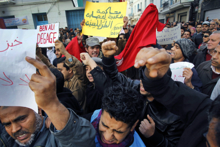 ▲ 지난 14일 튀니지 주민들이 독재자 벤 알리의 퇴진을 요구하며 대대적인 시위에 나섰다. 수십년간 독재에 시달리던 주민들의 분노가 폭발한 배경에는 정치적인 이유뿐 아니라, 최근 식품가격 폭등이 있다. ⓒAP=연합