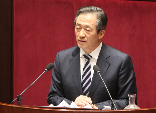 | ▲ 한나라당 정몽준 의원이 지난 2월 국회 본회의장에서 "미국의 핵우산만으로 북핵을 폐기할 수 없는 만큼 전술핵무기 재반입을 검토해야 한다"고 주장하고 있다. ⓒ연합뉴스 |