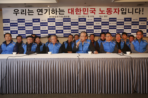 | ▲한국방송연기자노동조합 조합원들이 지난해 11월 20일 오후 4시, 서울 영등포구 여의도동의 한 중식당에서 기자회견을 열어 밀린 출연료를 지급할 것을 KBS에 요구했다. ⓒ프레시안(최형락) |