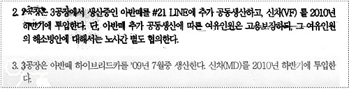 지난 3월 31일 물량공동위 합의로 가장 먼저 고용의 위기가 발생할 곳은 HD(아반떼) 공동생산이 합의된 울산 2공장과 3공장이다. 위 합의문에 나온 "아반떼 추가 공동생산에 따른 여유인원"은 2공장 비정규직이다.