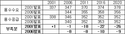 | ▲ (출처) : 건설교통부, <수자원장기종합계획>,2001년도,2006년도 |
