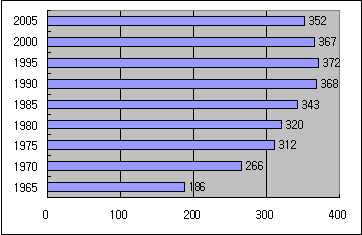 | ▲ (출처) 1971~1986년 자료는 건설부의 건설통계연보, 1991~2006년 자료는 환경부의 환경통계연감 |