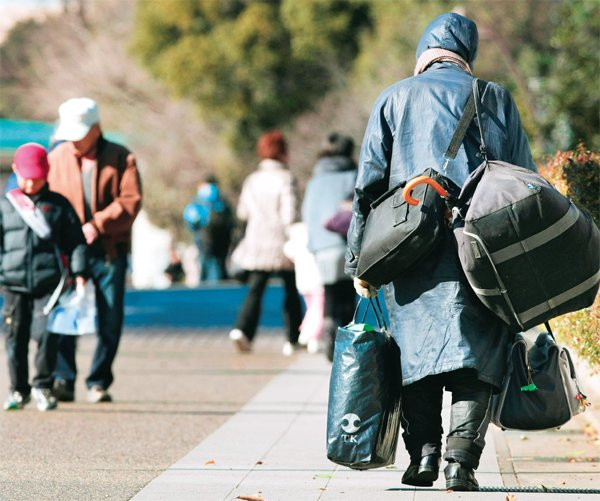 | ▲ 도쿄 공원을 떠돌고 있는 노숙자. 경제 위기로 파견노동자들이 대거 해고되면서 PC방을 전전하는 '네트난민', 맥도날드 등 패스트푸드 점에서 커피 한잔으로 밤을 지새우는 '맥도날드 난민' 등을 도심에서 어렵지 않게 볼 수 있다. ⓒ연합 |